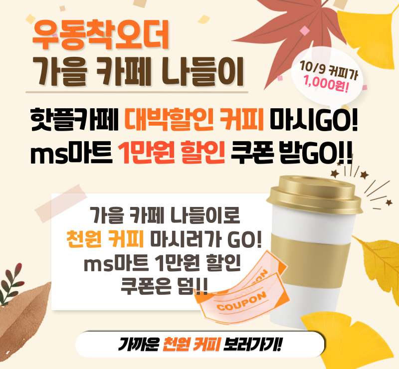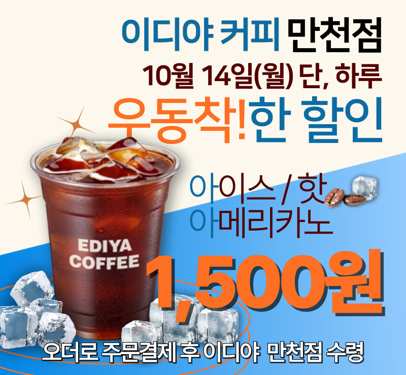 마침 오늘 10월 14일은 이디야커피 만천점에서 우동착!한 할인 이벤트 진행입니다!